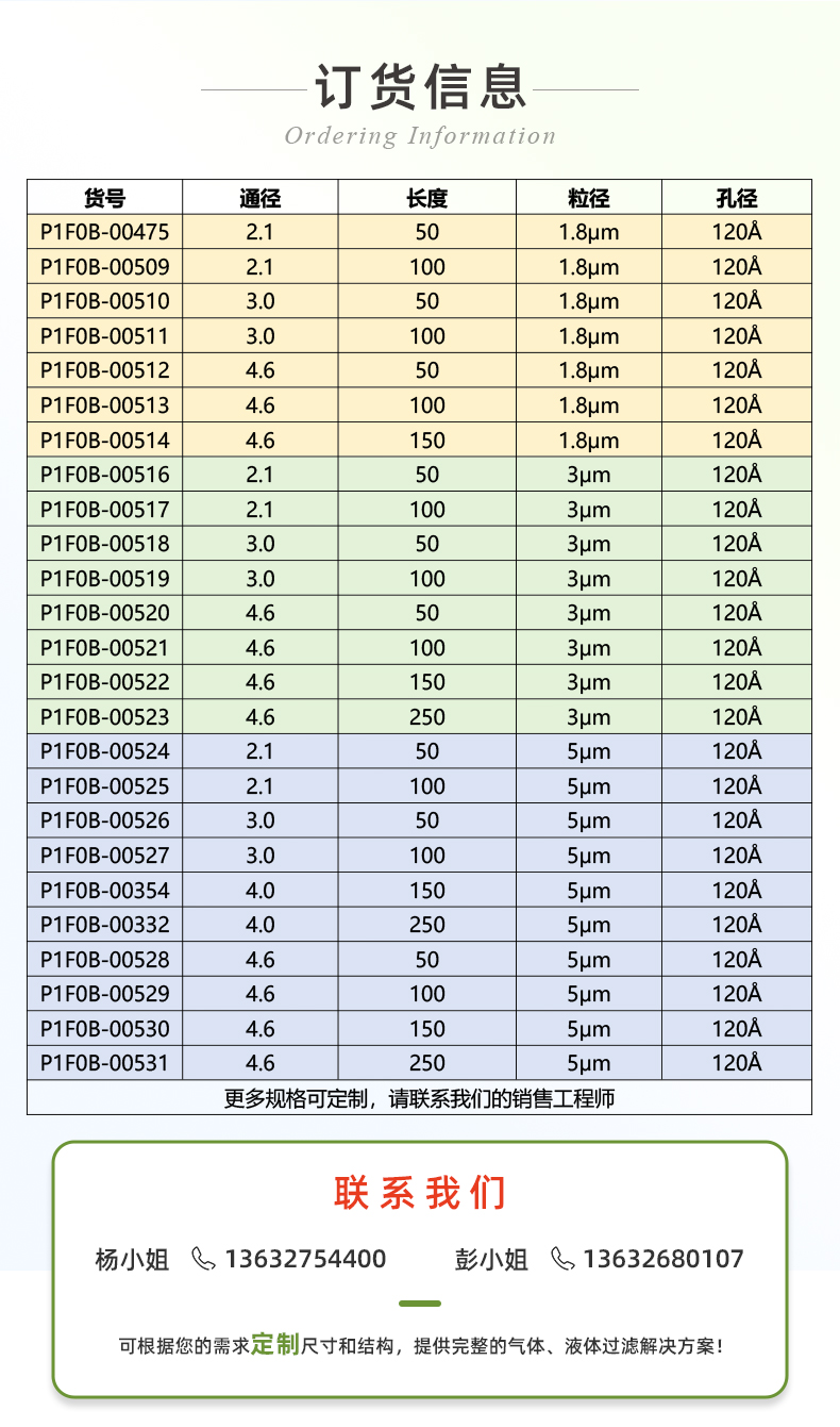 | 常用產(chǎn)品規(guī)格(mm) | 2.1*50、2.1*100、3.0*50、3.0*100、4.6*50、4.6*100、4.6*150、4.6*250 | ||