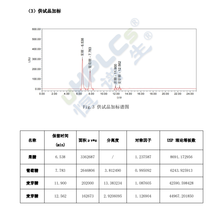 1、蜂蜜及蜂產(chǎn)品中果糖、葡萄糖、蔗糖、麥芽糖這4種糖的定量檢測