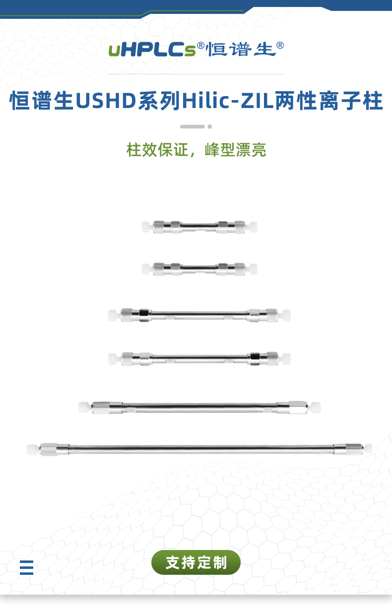 Hilic-ZIL兩性離子柱具有極強(qiáng)的親水性,可以使用100%含水流動(dòng)相,能夠有效地保留在反相液相色譜(RP-LC)中保留弱或不保留的強(qiáng)極性離子型化合物以及堿性藥物分子,特別適用于碳水化合物、寡糖、膽堿、核苷、核苷酸、氨基酸和多肽等極性和親水性化合物的分析。