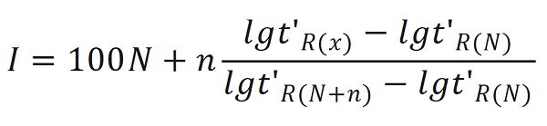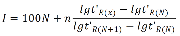 保留指數(shù)的計(jì)算式為: