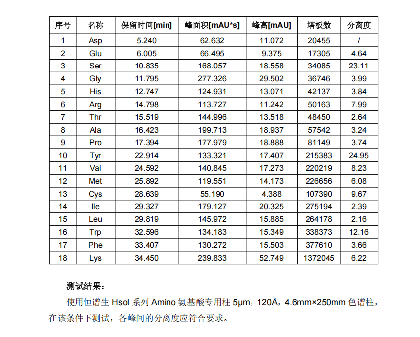 恒譜生Hsol系列氨基酸專用柱是專為氨基酸(包括天然氨基酸和合成氨基酸)分離設(shè)計(jì)的高效液相色譜(HPLC)柱。針對(duì)氨基酸的極性強(qiáng)、易電離和同分異構(gòu)體多等結(jié)構(gòu)特性,通過(guò)優(yōu)化固定相結(jié)構(gòu)、粒徑分布及柱體工藝,實(shí)現(xiàn)對(duì)各類氨基酸及衍生物的精準(zhǔn)分離和快速檢測(cè)。這款氨基酸專用柱廣泛應(yīng)用于生物化學(xué)、食品檢測(cè)、醫(yī)藥研發(fā)和農(nóng)業(yè)分析等領(lǐng)域,確保高可靠性和重復(fù)性。