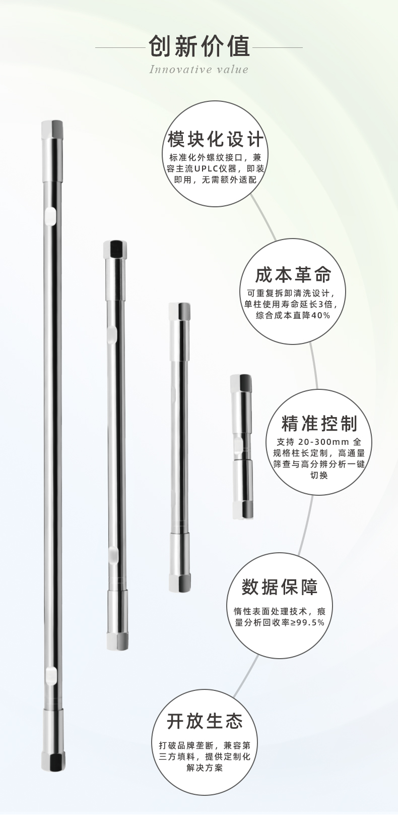 ● 聚四氟乙烯柱管:化學(xué)性質(zhì)穩(wěn)定,耐腐蝕性極佳,內(nèi)壁光滑,適合分析對(duì)金屬敏感的樣品。